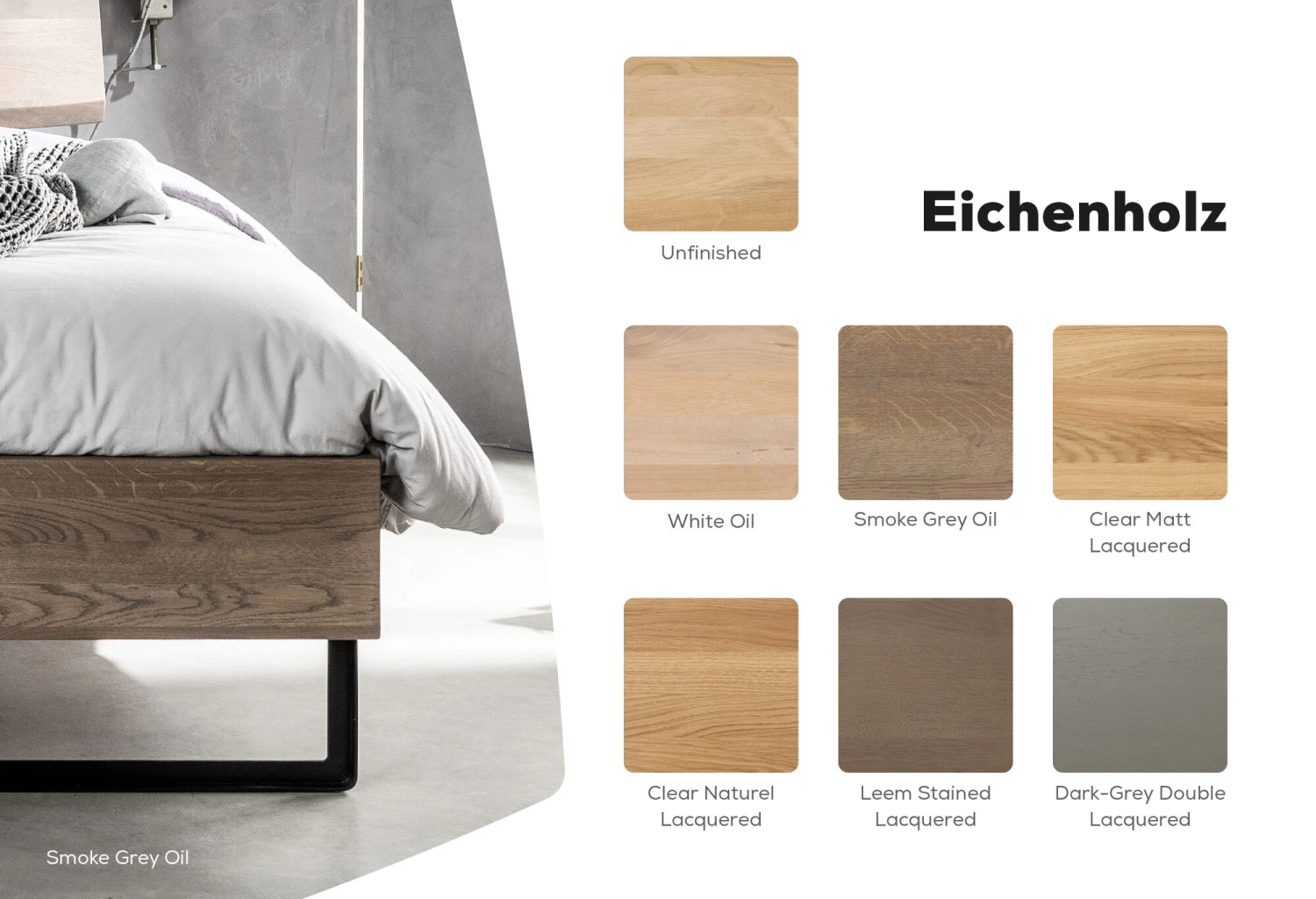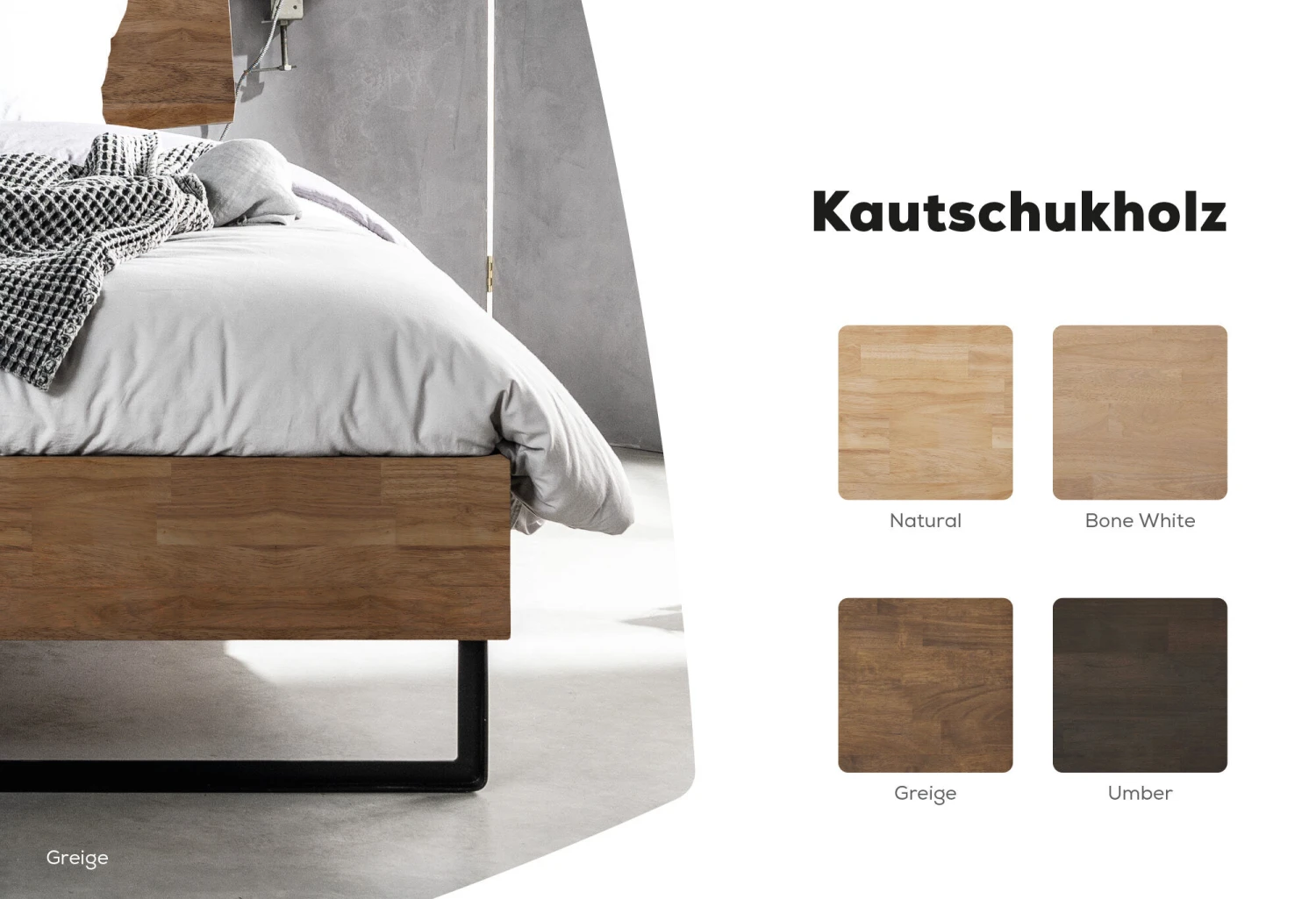 Ein Bettgestell mit schnörkellosem Design, hergestellt aus robustem Metall, Stahl und massivem Holz. Erhältlich in den Farben Schwarz, Grau und Weiß. Eine Kombination von alt und neu, schönen Details und Handwerk. Das ist die Basis des Entwurfes vom Bettgestell Raw.